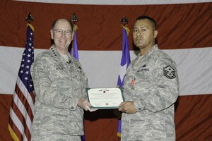 Nov. 19, 2009 741st first sergeant receives Bronze Star A 741st Missile Security Forces Squadron first sergeant received the Bronze Star Medal at the Air Force Space Command commander's all-call Nov. 12 at the 3-Bay Hangar. Master Sgt. Fiafia Seau was presented the medal by Gen. C. Robert Kehler, AFSPC commander, for his meritorious service as Det. 3,