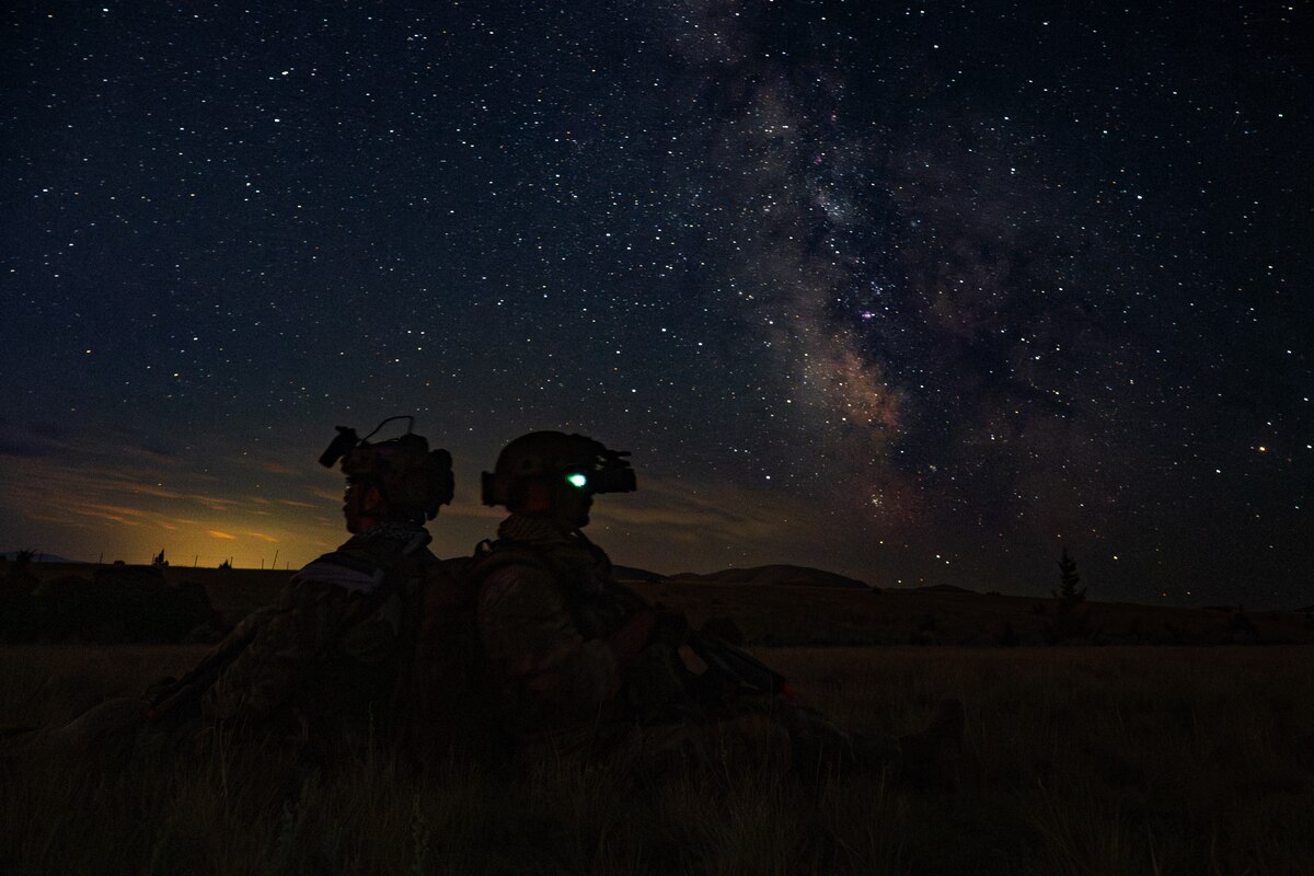 U.S. Air Force explosive ordnance disposal technicians review plans during exercise Big Trouble in Little Townsend at Limestone Hills Training Area, Mont., Aug. 14, 2025. EOD members undertake some of the Air Force's most dangerous missions in diverse and unforgiving locales worldwide; they work solo or in teams and employ special tools and vehicles to safely locate, identify, recover, disarm and dispose of dangerous weapons that threaten people, property and natural environments. (U.S. Air Force photo by Airman 1st Class Teniya Caldwell)
