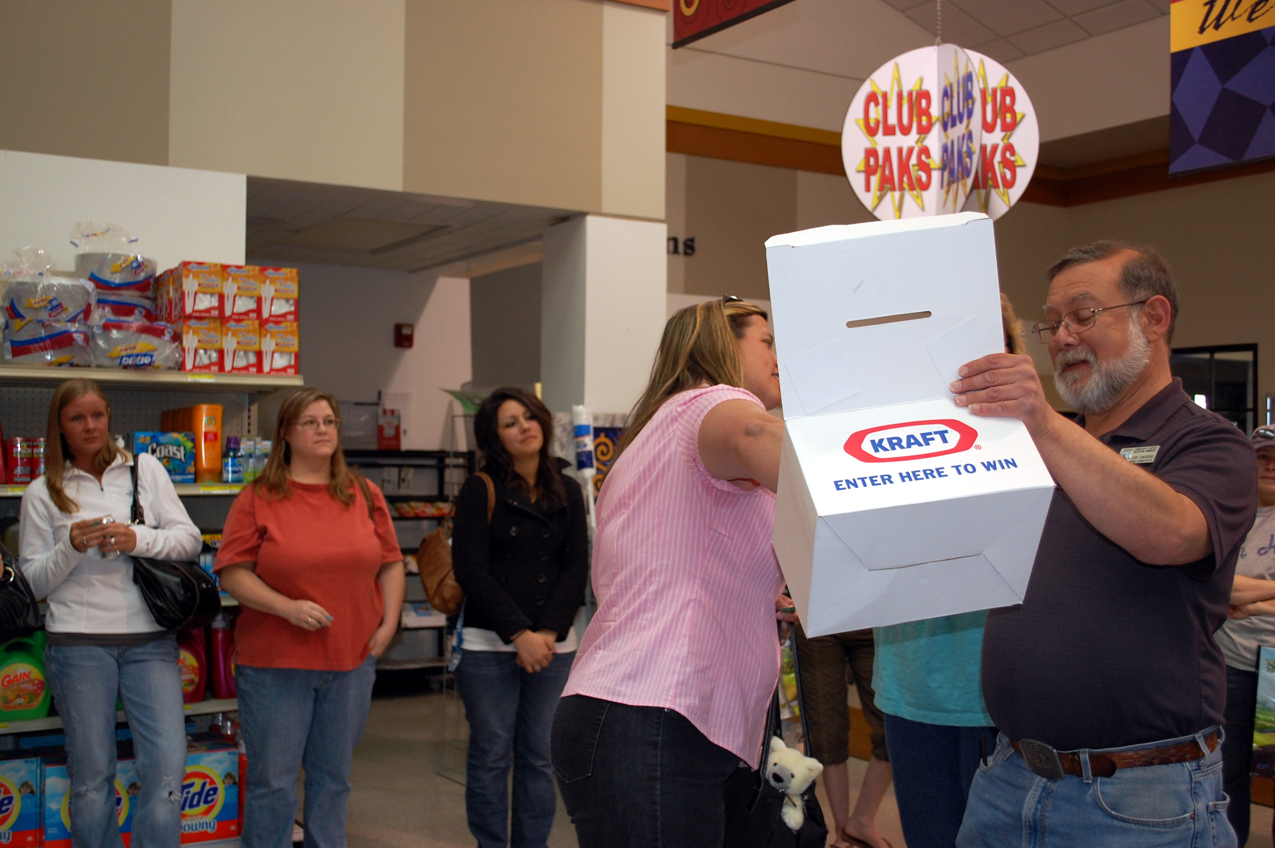 Teresa Connor draws the next winning ticket for door prizes. Twenty-seven spouuses of deployed Team Malmstrom members came out for a night of fun in their honor at the Commissary May 23. (U.S. Air Force photo/Valerie Mullett)